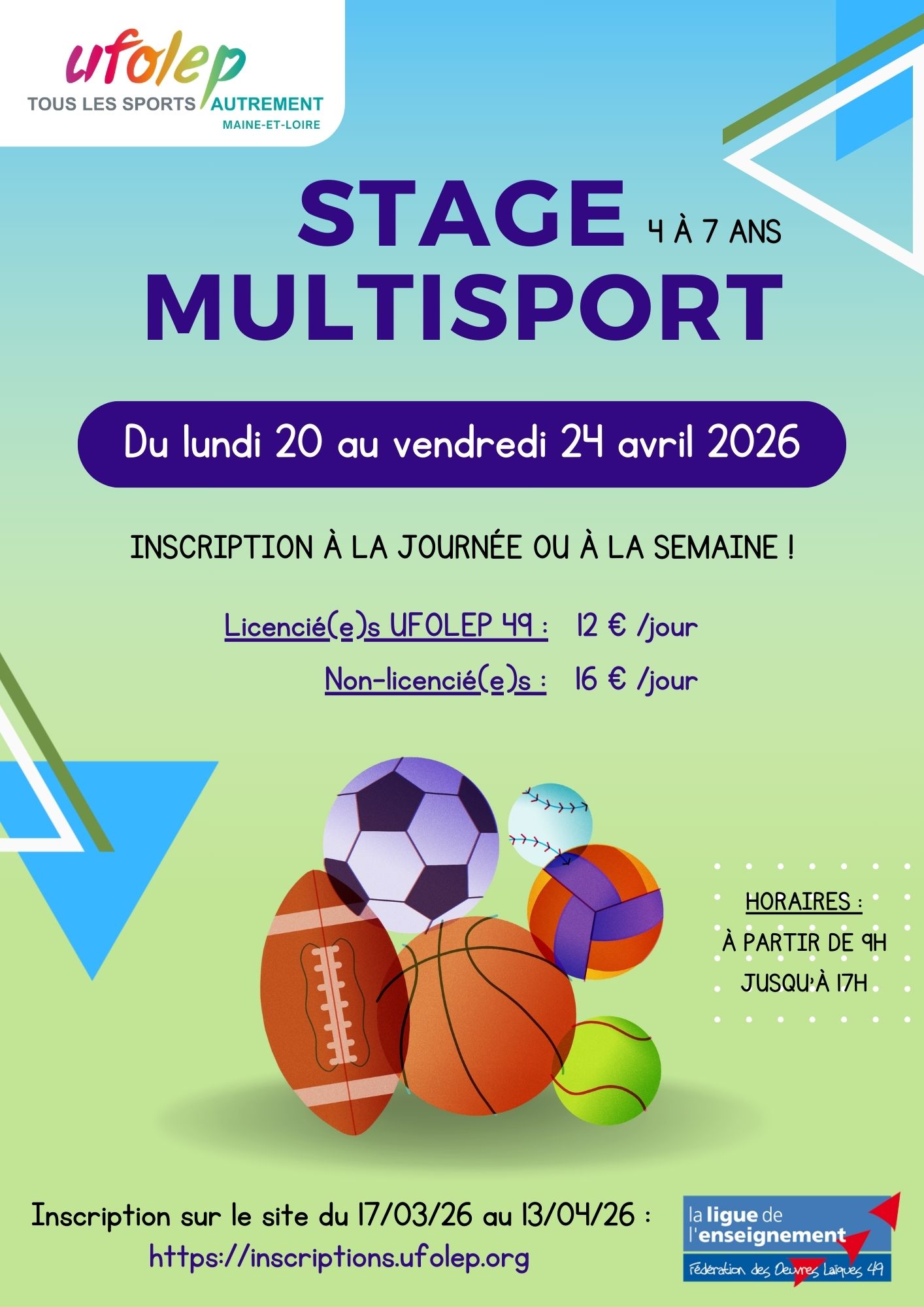 Ce stage est ouvert aux enfants de 4 à 7 ans, licencié(e)s Ufolep et non-licencié(e)s.