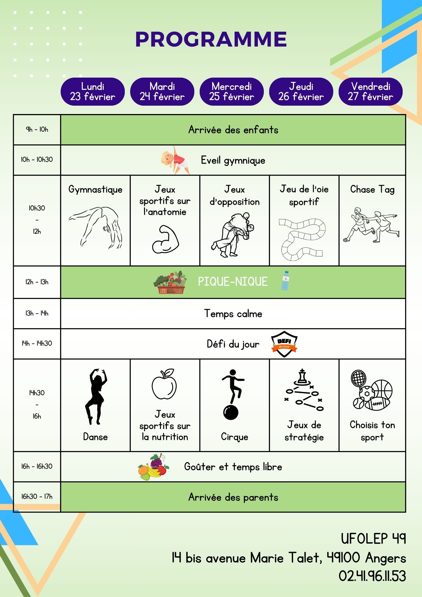 Ce stage est ouvert aux enfants de 4 à 7 ans, licencié(e)s Ufolep et non-licenciés.